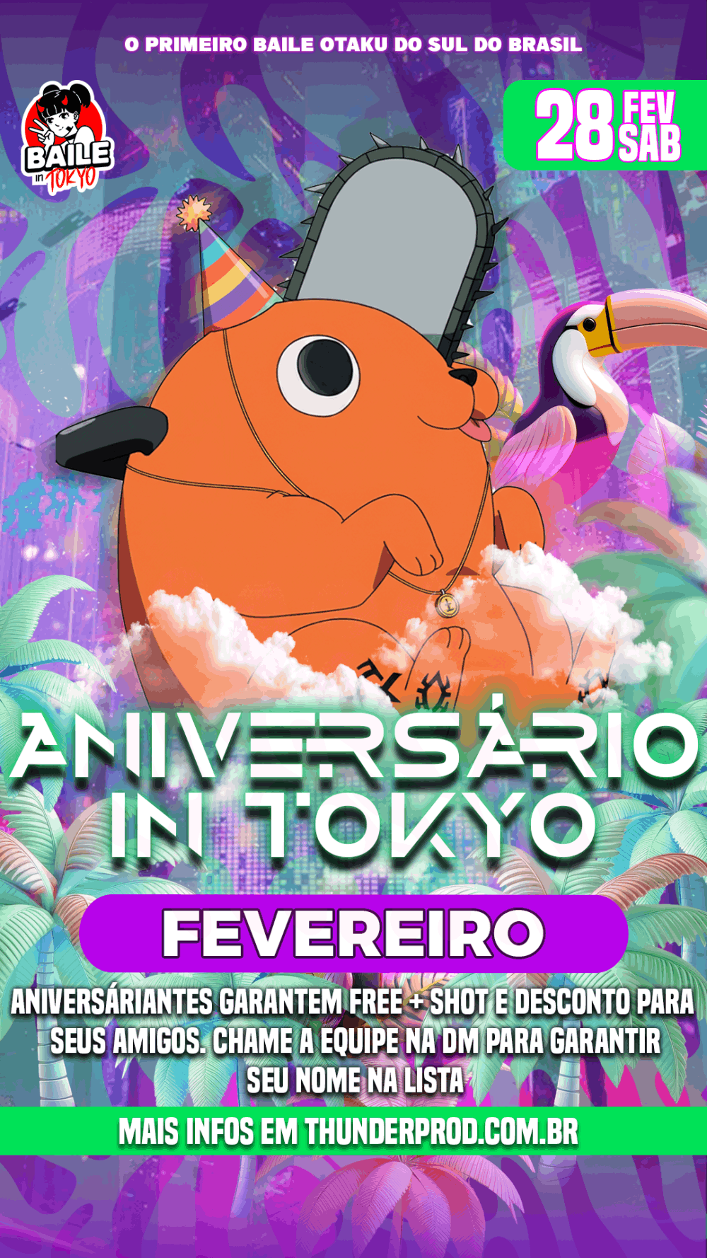 Nossa missão é reunir todos os feiticeiros jujutsu, caçadores de demônios e a elite otaku de POA para o fluxo mais épico do ano! Dizem que até o Pochita já garantiu o chapeuzinho de aniversário e o pessoal da Toman foi visto descendo a João Inpácio atrás do KISS SPACE COM DOCES. 🍭✨